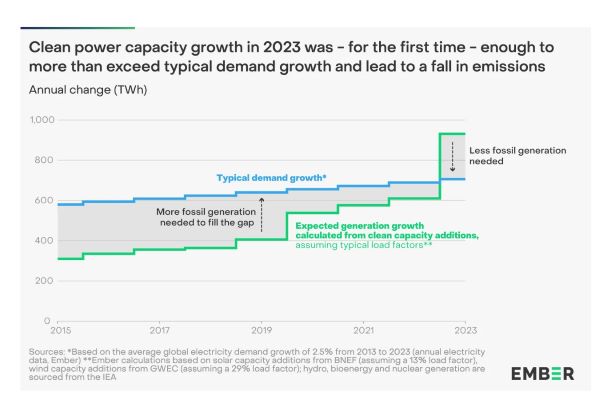 2024년 5월, 청정 에너지 싱크탱크인 엠버(Ember)는 전 세계 전력 생산에 대한 검토를 통해 매우 중요한 역사적 전환점을 발표했다.