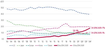 주요 국가별 글로벌 반도체 시장 점유율(%)