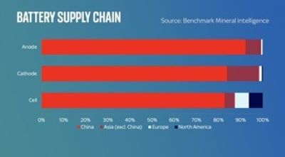 관세와 기술 전쟁은 단순히 미국 자동차 산업을 보호하기 위한 것이 아니기 때문이다. 중국은 배터리(셀) 제조에서도 완전히 우위를 점하고 있기 때문에 전기차 제조에서 완전히 우위를 점하고 있다. 또한 전지에 들어가는 화학 물질(음극 및 양극)의 제조에서도 완전히 우위를 점하고 있다.