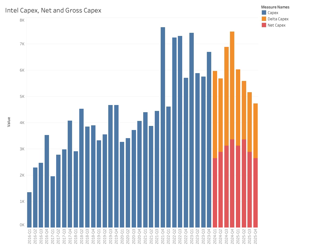 "컨퍼런스에서 인텔은 2024년 자본 지출 예산을 260억 달러, 2025년에는 215억 달러로 20% 삭감할 것이라고 발표했다. 새로운 예산은 총 자본 지출 예산과 순 자본 지출 예산으로 흥미롭게 제시되었다."