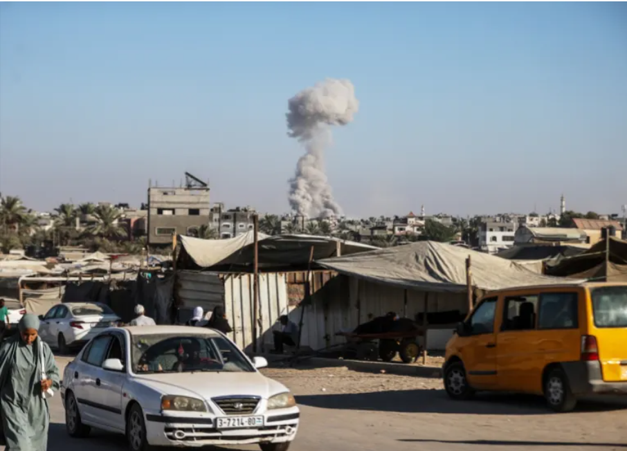 8월25일 일요일 가자지구 데이르 엘 발라에 대한 이스라엘의 공격으로 연기가 피어오른다.