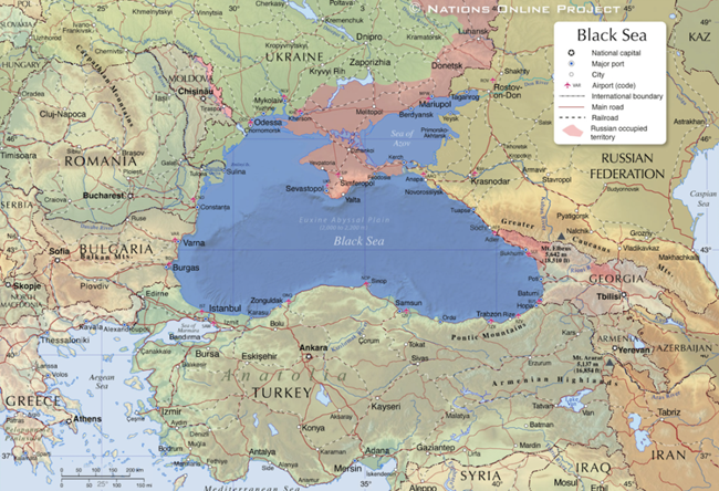 튀르키예는 보스포러스(Bosphorus) 해협과 다르다넬스(Dardanelles) 해협을 통해 흑해를 오가는 선박의 통행을 통제하고 있으며몽트뢰 협약(Montreux Convention)에 따라 비연안 국가의 해군 선박의 통행을 금지할 수 있고이는 2022년 2월부터 꾸준히 시행되고 있다.