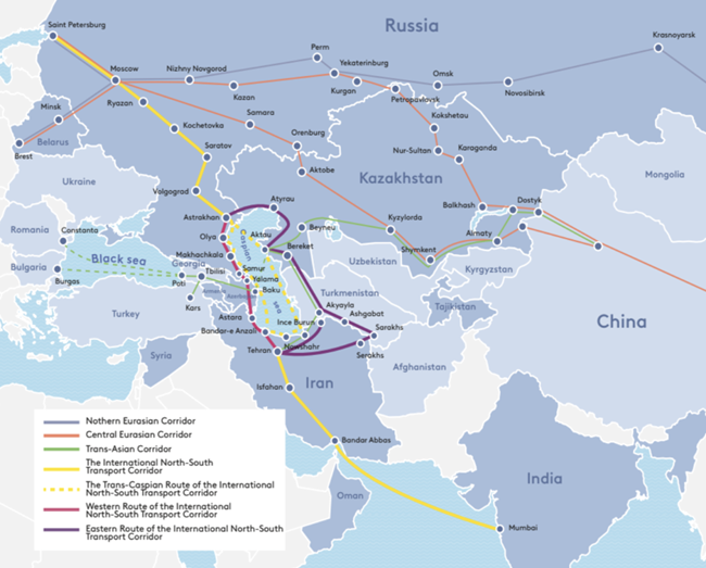 러시아와 이란은 자신들을 배제하려는 미국의 계획에 분명히 반대하고 있다특히 이란은 서방이 중앙아시아 전역의 가상의 고객 국가를 연결하는 나토의 '투란 회랑(Turan Corridor)'에 대해 우려하고 있다. (회랑은 정치적군사적경제적 목적으로 특정 지역이나 국가를 연결하는 통로를 의미)