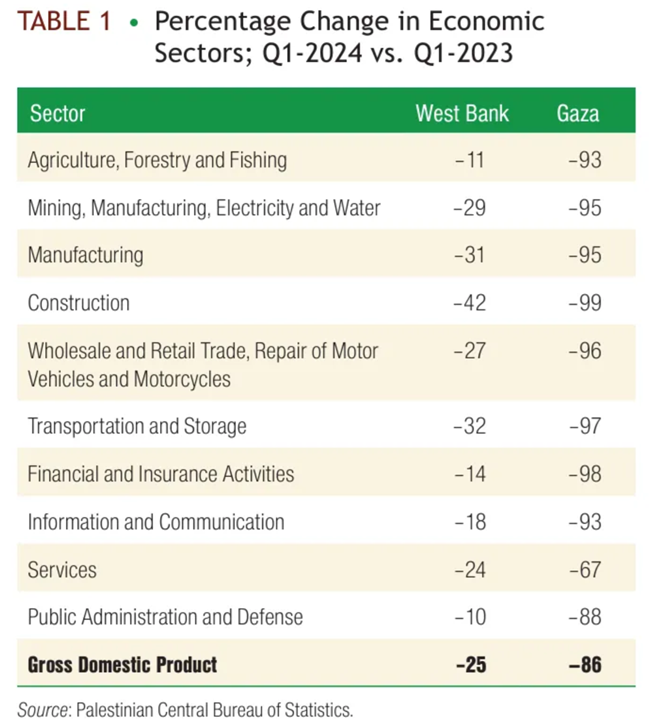 가자지구가 파괴되는 동안 2024년 1분기 서안지구의 경제는 전년 동기 대비 25% 급감했다.