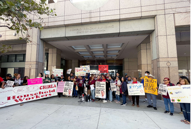 개빈 뉴섬 주지사는 이러한 배제의 유산을 2020년 SB 1257 법안에 대한 거부에서 극명하게 드러냈다. 이 법안은 COVID-19 팬데믹이 한창일 때 가사 노동자에게 Cal/OSHA 보호를 확대하려는 것이었지만, 그는 이 필수 노동자들의 안전과 존엄성보다 가정의 사생활을 우선시했다. 뉴섬 주지사는 표면적으로는 가정 내 고용주들이 준수할 교육을 받지 못했으며, 이로 인해 Cal/OSHA가 가정에 지나치게 많은 관할권을 갖게 된다는 이유로 이 법안을 거부했다고 밝혔다. 그러나 어떠한 청문회에서도 반대 의견은 등록되지 않았다. 주지사가 내세운 이러한 논리는 가정 소유자의 사생활을 취약한 노동자들의 생명보다 더 가치 있게 여기는 것으로, 유독 화학물질, COVID-19, 산불 연기와 같은 위험한 작업 환경에 노출된 개인들의 안전에 대한 냉담한 무시를 보여준다.