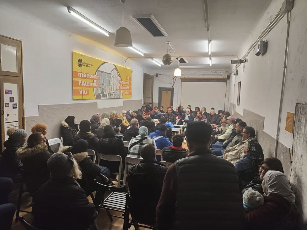 PAHC 회원들이 2024년 겨울 카탈루냐 만레사의 아테네우 라 세키아(Ateneu La Sèquia)에서 집회를 개최하고 있다. 출처: PAHC