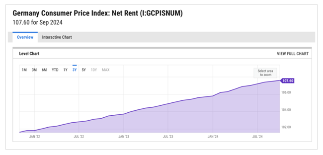 게다가 독일은 유럽 대륙에서 가장 큰 부동산 투자 시장으로 알려져 있으며, 외국인 투자자들도 독일 부동산에 점점 더 많이 투자하고 있다. 독일 정부는 치솟는 임대료 문제를 해결하는 척하며 2029년까지 임대료 동결 정책을 연장했다. 이 정책에 따라 새 임대 계약을 체결할 때, 임대료는 해당 지역의 유사 임대료보다 10% 이상 높아질 수 없다. 하지만 신축 건물, 대대적으로 현대화된 건물, 부분적으로 가구가 비치된 아파트의 경우 예외가 적용된다.