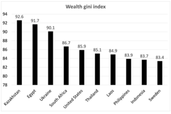 이 목록에 포함된 국가들 중 일부는 매우 가난하거나 독재 또는 군사 정권 아래에 있는 나라들이라 예상할 수 있다그러나 이 상위 10위 목록에는 미국과 스웨덴도 포함되어 있다, '신자유주의적선진 경제와 '사회민주주의적경제 모두가 이 목록에 들어가 있다이는 자본주의가 부의 불평등에 있어 차별하지 않는다는 점을 보여준다.