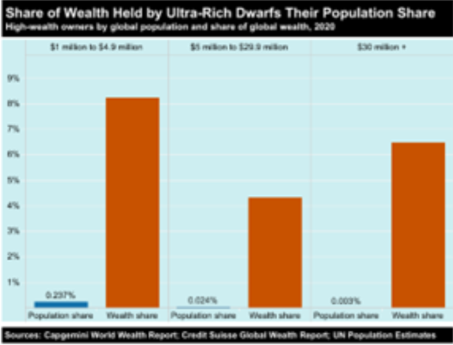 "초고액 순자산 보유자(Ultra high net worth individuals)"라는 표현은 자산이 3천만 달러를 초과하는 사람들을 지칭하는 자산 관리 업계의 용어로이들은 전 세계 부의 놀라울 정도로 불균형적인 비율을 차지하고 있다이들은 전 세계 총 부의 6.5%를 소유하고 있지만세계 인구의 극히 일부분(0.003%)에 불과하다.