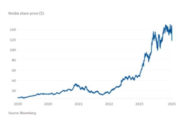 딥시크는 미국의 주요 하이테크 기업 7곳을 수면 아래에서 강타한 어뢰와 같다. 딥시크는 최신형이자 최고급인 엔비디아(Nvidia)의 칩과 소프트웨어를 사용하지 않았으며, 미국 경쟁업체들과 달리 AI 모델을 훈련하는 데 막대한 비용을 지출할 필요가 없었다. 그럼에도 동급 수준의 유용한 애플리케이션을 제공한다.