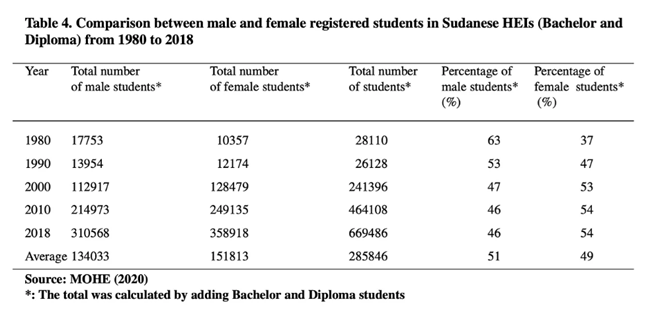 출처: 베시르, M. M., N. E. 아흐메드, M. E. 모하메드. "수단의 고등 교육과 과학 연구: 현재 상황과 미래 방향." 아프리카 농촌 개발 저널(African Journal of Rural Development) 5.1 (2020): 115-146.