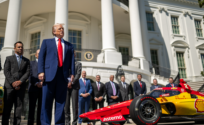트럼프는 4월 9일 백악관 남쪽 잔디밭에서 열린 레이싱 챔피언들과의 행사 중 발언했다출처 트럼프 공식 X