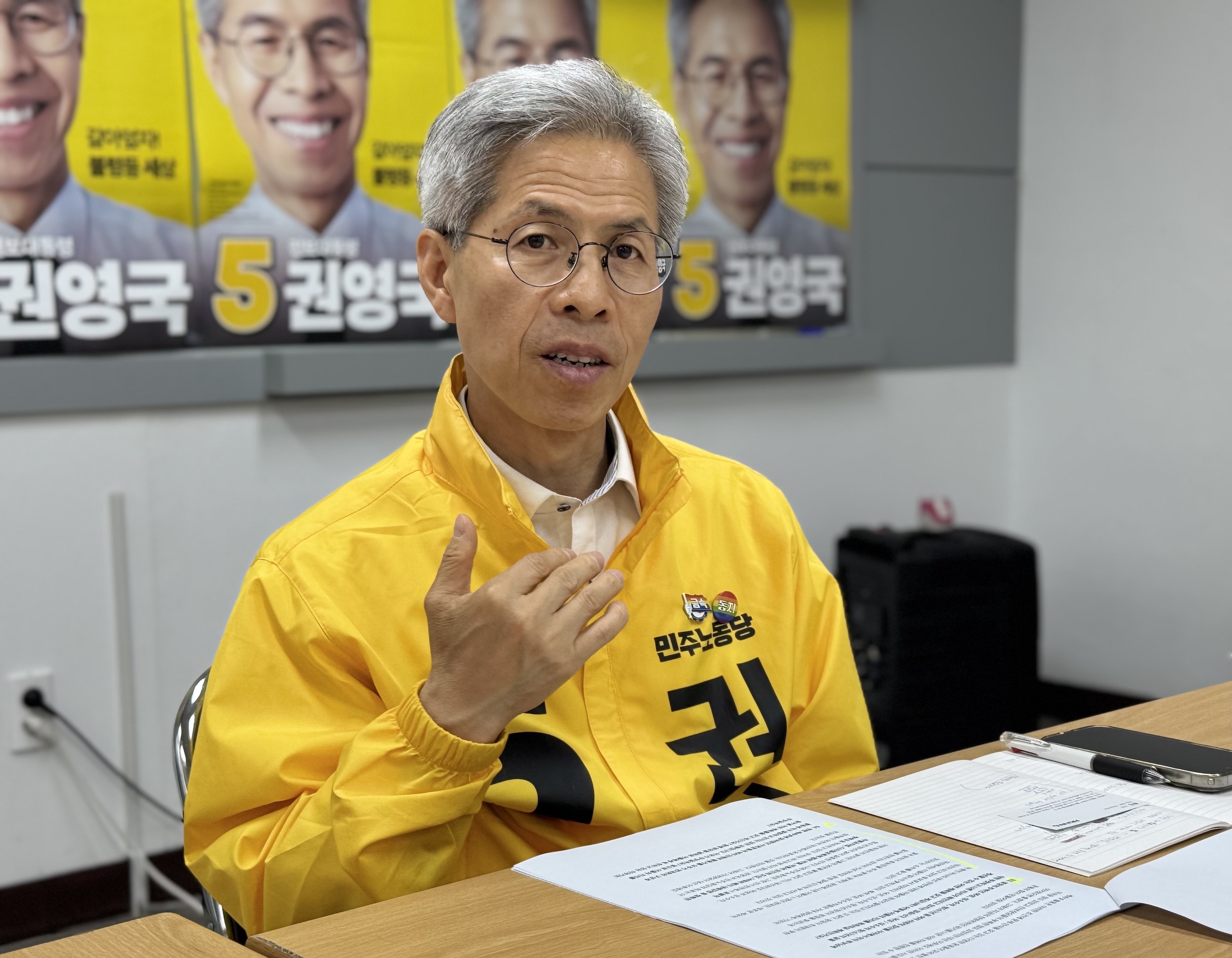 옛 구로공단 가까이에 자리한 민주노동당 당사에서 지난 16일, 권영국 후보를 만났다. 권 후보는 이날 기자가 못다 한 질문에는 바쁜 유세 일정에도 시간을 쪼개어 19일 서면으로도 꼼꼼히 답해 주었다.