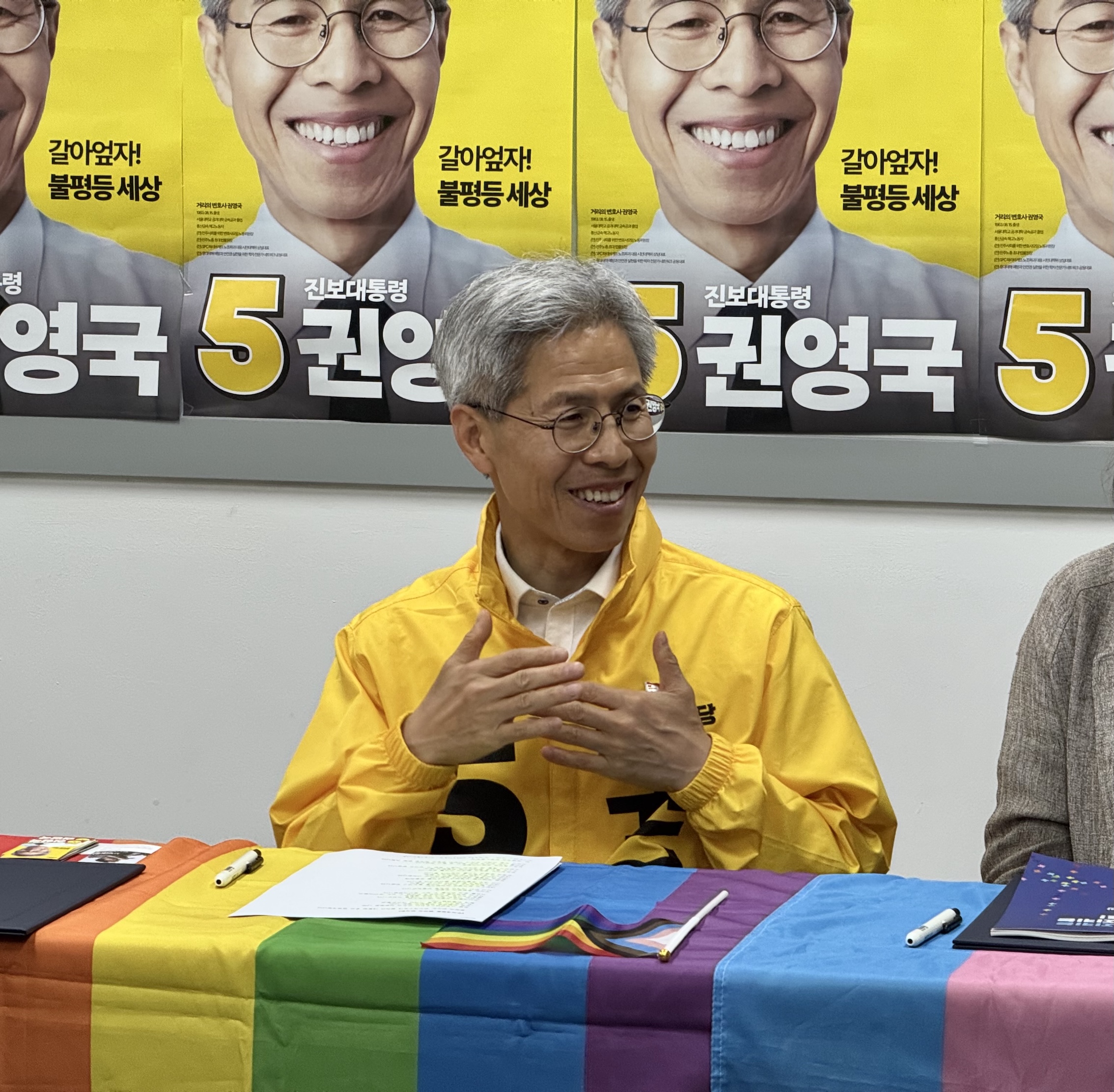 16일 성소수자 대선 요구 정책 협약식 현장에서 권영국 후보. 참세상