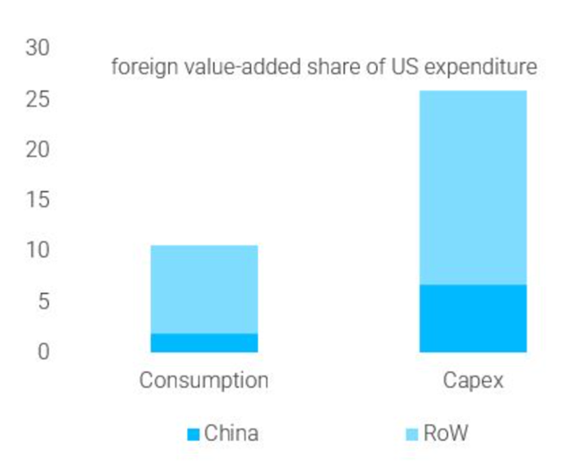 미국 기업들은 현재 자국 상품과 서비스에 대한 수요 둔화를 겪고 있으며, 특히 수출 부문에서 그러하다. 관세는 생산 비용을 상승시키며, 기업들은 이를 이윤 감소나 노동자 해고를 통해 감당하거나, 가계에 더 높은 가격으로 전가해야 한다. 또는 그 둘 모두를 감행해야 한다. 여기에 새로운 차입과 기존 부채에 대한 이자 부담이 상승하고 상대적으로 높은 수준을 유지하면서 이윤 압박은 더욱 심화될 것이다. 씨티은행은 올해 평균 기업 이익 성장률이 단 1%에 그칠 것으로 예상하고 있다. 그리고 연방준비제도의 최근 연구에 따르면, 중국산 수입품에 대한 “급작스러운 중단”은 미국 기업 투자 중 7%에 영향을 미칠 것으로 나타났다.