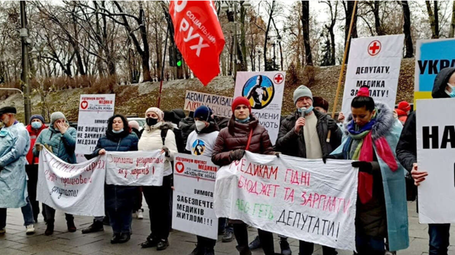 소찰니 루흐(Sotsialnyi Rukh)의 보건의료 노동자 지지 시위. 출처: 소찰니 루흐(Sotsialnyi Rukh)