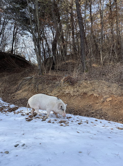 생추어리 밖을 나와 눈 쌓인 산길을 걸어 다니는 잔디. 출처: 필자 제공