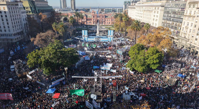 시위는 다양한 의제를 겨냥한다좌파 성향 전 대통령 크리스티나 페르난데스 데 키르치네르(Cristina Fernández de Kirchner)를 정치적 박해로부터 지켜내는 것부터존엄한 은퇴를 요구하고 공공서비스 공격에 항의하는 데 이르기까지 광범위하다수백만 명의 아르헨티나인들이 하비에르 밀레이(Javier Milei) 대통령의 정책을 거부하고 있는데그중 상당수는 미국의 도널드 트럼프 대통령과 같은 극우 지도자들의 반노동·반권리 의제와 흡사하다.