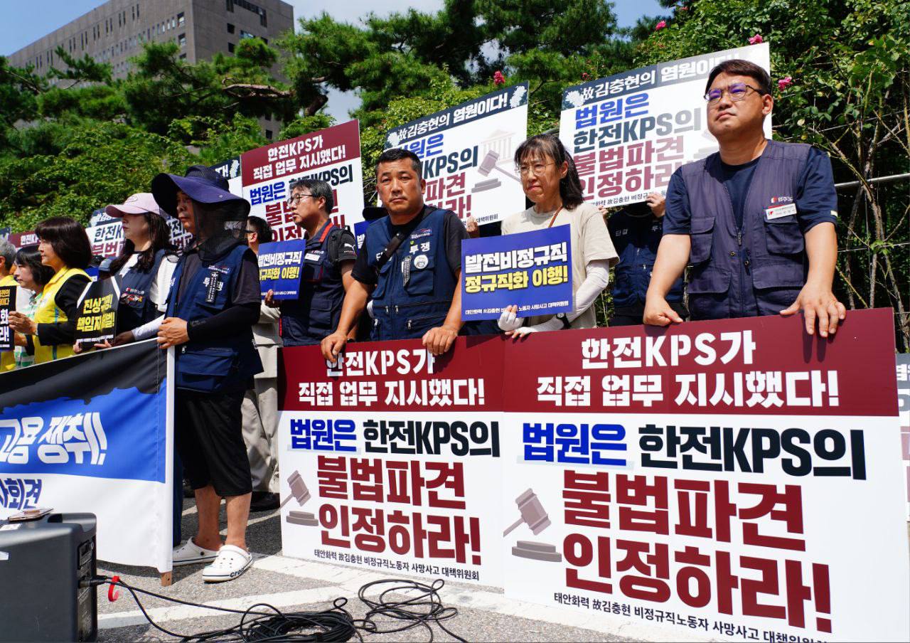 대책위는 “불법파견이 드러나도, 노동자들이 직접고용을 요구해 소송에 나서도 문제는 끝나지 않고, 1심에서 이기고도 2심·3심으로 끌려 다니며 고통받는 것이 지금의 현실”이라며 “이제 법원이 책임을 다해, 한전KPS가 공공기관으로서의 최소한의 책무를 다하도록 직접고용 판결을 내려야 한다”고 강조했다.