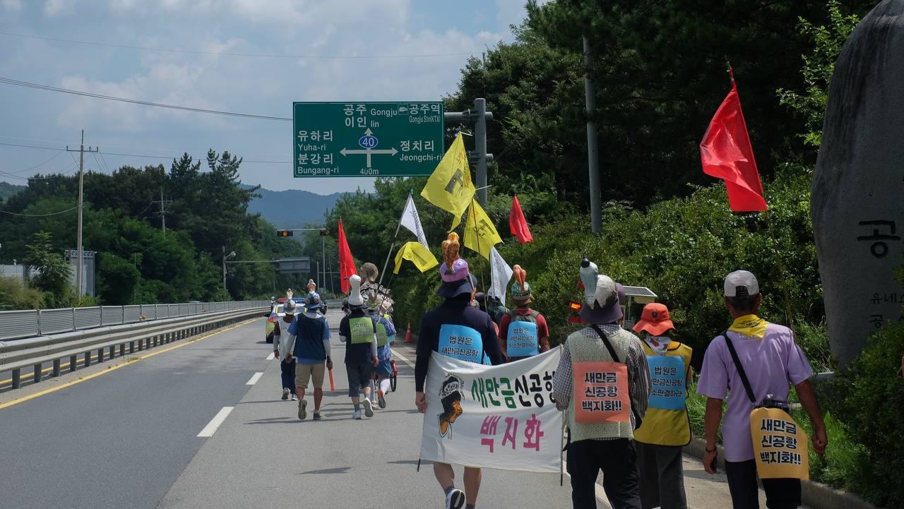 그 더위를 안고 한달 동안(8월 12일~9월 11일) 전주에서 서울까지 250km를 걸어 올라가고 있는 사람들이 있으니, 바로 <새, 사람 행진단>이다. <새, 사람 행진단>은 9월 11일 서울행정법원에서 열리는 새만금신공항 기본계획 취소소송의 1심 선고를 앞두고, 더 많은 사람들에게 수라갯벌 보존과 새만금신공항 백지화가 필요한 이유를 알리며 그들과 함께 더 큰 목소리로 재판부에 취소판결을 촉구하기 위해 꾸려졌다.