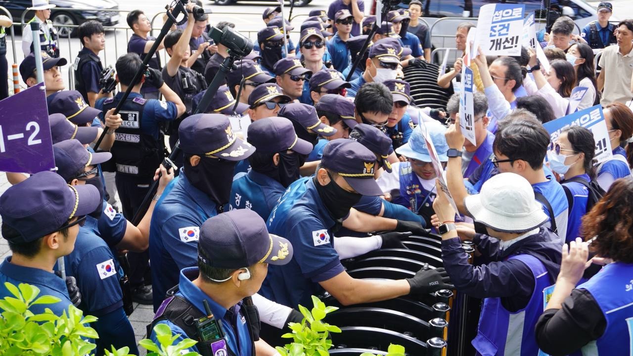 한편, 이날 의료연대본부 소속 국립대병원 노동자들은 기자회견을 마치고 지난 8월부터 진행해 현재까지 7천여 명이 참여한 “국민 건강권 지키는 국립대병원 노동자 서명운동”의 중간 결과와 기자회견 참여자들이 직접 작성한 서명지를 이재명 대통령에게 전달하기 위해 대통령실 민원실로 향했으나, 이 과정에서 경찰이 펜스를 설치하고 노동자들의 진입을 제지하는 일이 벌어졌다. 노동자들은 이같은 경찰의 태도를 “시민의 권리를 막아서는 행위로 규정하고 현장에서 강하게 규탄”을 이어갔고, 경찰과 협의 끝에 10명씩 나누어 민원실로 이동해 서명 결과를 접수했다. 기자회견에 참여한 노동자들이 현장에서 작성한 서명지는 이후 대통령실 면담에서 전달했다.