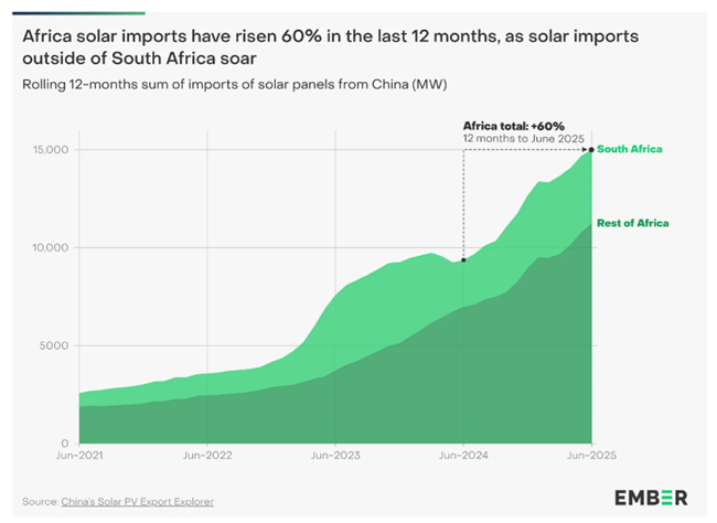 전기화와 빈곤의 다른 한 끝에서는, 아프리카로의 중국산 태양광 패널 수출이 급증하고 있다는 극히 고무적인 소식이 있다.