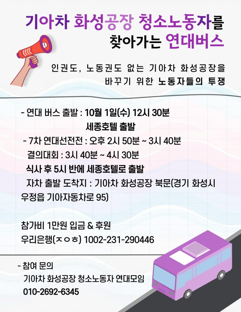 하청 노동자 노란봉투법 기아자동차 청소노동자 연대버스