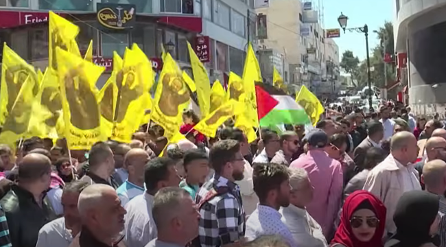 바르구티의 석방을 요구하는 팔레스타인들. 출처: 현지 방송 화면 갈무리