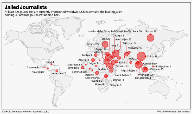 중국 정부가 자국 내에서 언론인을 억압하는 건 널리 알려진 사실이지만이제 그 통제망이 국경 너머까지 뻗치고 있다는 점은 잘 알려지지 않았다이 억압은 언론의 자유뿐 아니라 환경 문제의 가시성에도 심각한 영향을 끼친다.