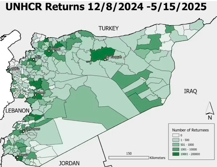 하지만 현재 시리아는 여전히 여러 지역에서 폭력이 계속되고, 통치는 분열해 있으며, 종파 갈등도 남아 있다. 그럼에도 난민들은 귀국하고 있다.