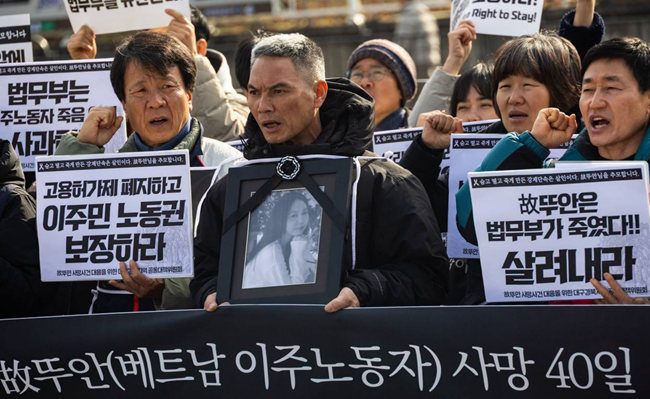 정부의 APEC 합동단속 과정에서 숨진 베트남 출신 유학생 고(故) 뚜안 씨의 사망 40일을 맞아 이주노동자·시민사회단체와 민주노총이 9일 서울 용산 대통령실 앞에서 기자회견을 열고 농성에 들어갔다. 이들은 한 달 넘게 정부가 공식 입장조차 내놓지 않은 채 책임을 회피하고 있다며 “국가폭력의 진실을 밝히고 강제단속을 중단하라”고 목소리 높였다.