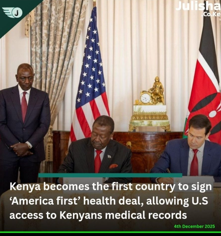 케냐가 아메리카 퍼스트(America First)’ 보건 협정에 서명한 첫 번째 국가가 되었다이번 협정을 통해 미국은 케냐 국민들의 의료 기록에 접근할 수 있게 되었다.(2025년 12월 4)