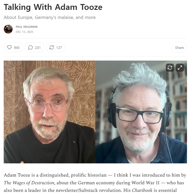미국 경제, 특히 인공지능을 포함한 성장 서사는 2025년을 거치며 빛이 바랬다. 그럼에도 유럽에 대한 비관적 인식, 이른바 ‘유럽 병(Euromalaise)’은 계속되고 있다. 독일 경제는 다중적 침체(polygloom)에 갇혀 있고, 프랑스의 공공 재정 위기 가능성도 점점 짙어지고 있다. 이러한 상황은 2024년 여름 드라기 보고서가 제기한 문제의식에 무게를 더한다. 이 보고서는 유럽의 불안을 집약하고 증폭시키며, 동시에 이를 정당화하는 계기가 됐다.
