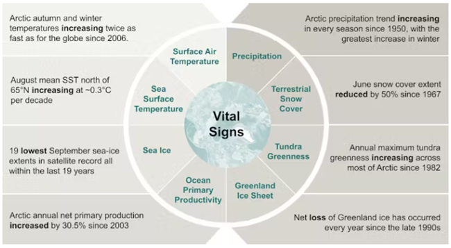 미국 해양대기청(National Oceanic and Atmospheric Administration, NOAA)의 2025년 북극 보고서 주요 내용이다.