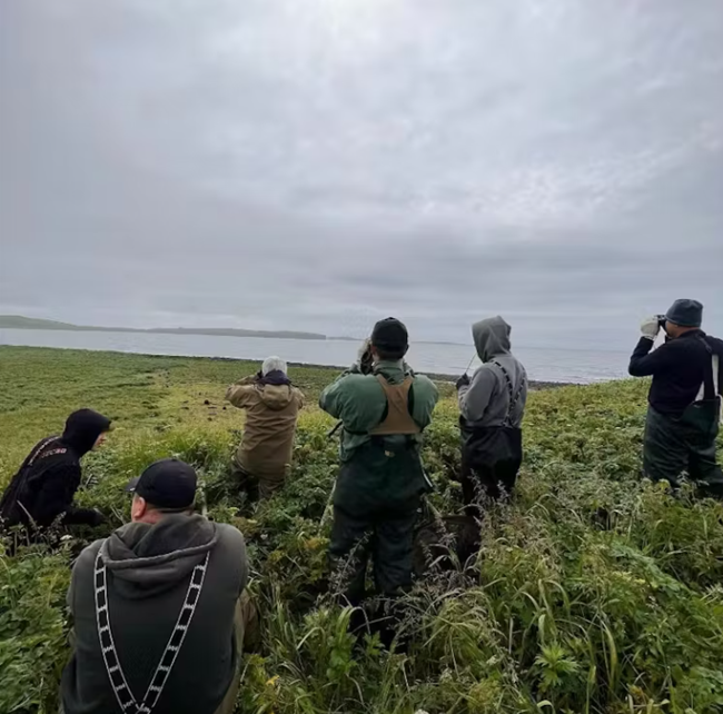 원주민 센티널 네트워크의 관측자들은 미국 해양대기청 과학자들과 함께 세인트폴섬에서 북방물개 개체 수와 건강 상태를 모니터링하고 있다. 출처: 해나-마리 래드, CC BY