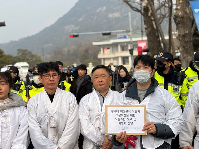 이성윤 공공운수노조 서울지부 지부장은 이재명 대통령은 정부가 모범적 사용자의 모습을 보여야 한다고 했으니대통령이 이 문제를 직접 챙겨라고 목소리 높였다김진억 민주노총 서울본부 본부장도 청와대 복귀가 공공성 회복을 의미한다면그 출발은 가장 취약한 위치에 있는 노동자들의 고용을 지키는 것이라고 말했다.