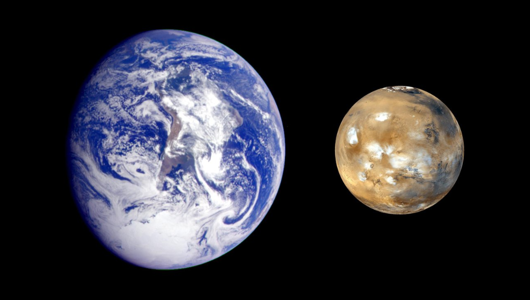 지구와 화성의 상대적인 크기를 보다 잘 이해할 수 있도록 제작된 합성 이미지다출처NASA/JPL-Caltech