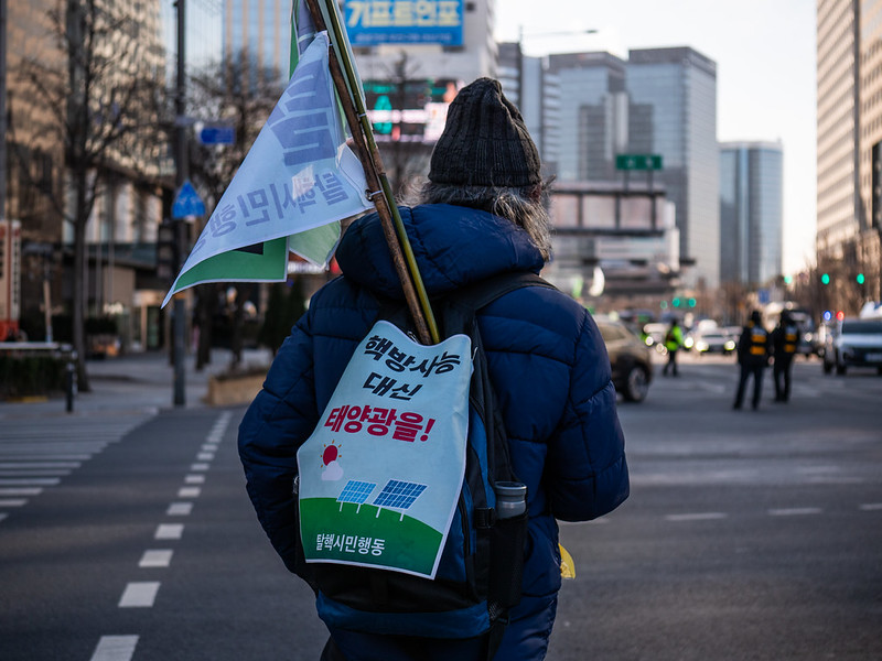 탈핵시민행동이 청와대 앞 마무리 기자회견을 가지고 있다. 참세상 박도형 기자.
