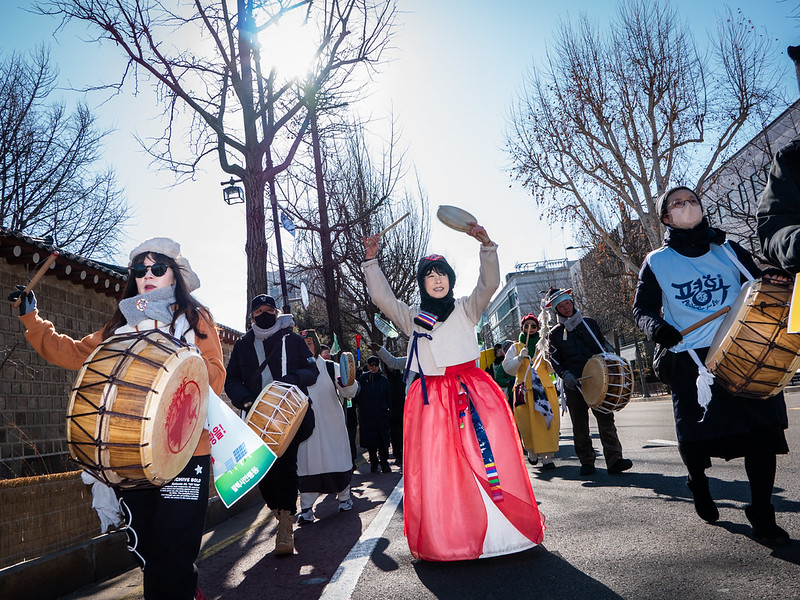 탈핵희망전국순례단이 순례를 마무리하고 청와대로 행진하고 있다. 참세상 박도형 기자.