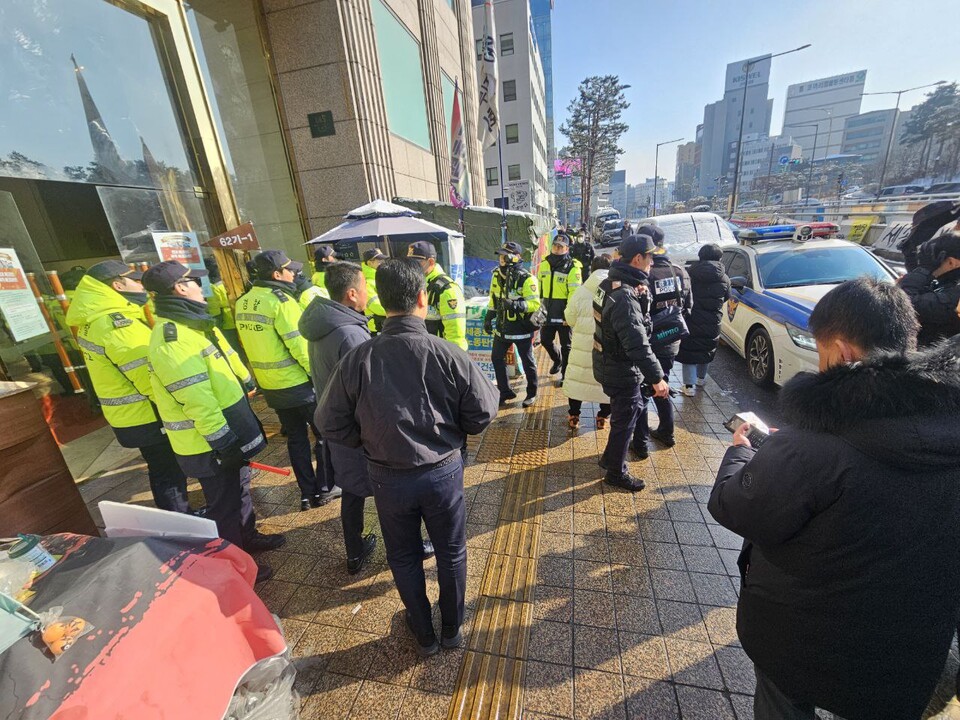 현재 공대위 활동가들과 연대 시민들은 세종호텔 정문 앞에 모여 오후 1시 기자회견을 진행한 이후 항의 집회를 이어가며 “연행자의 즉각 석방”과 “해고자 복직” 등을 요구하고 있다.