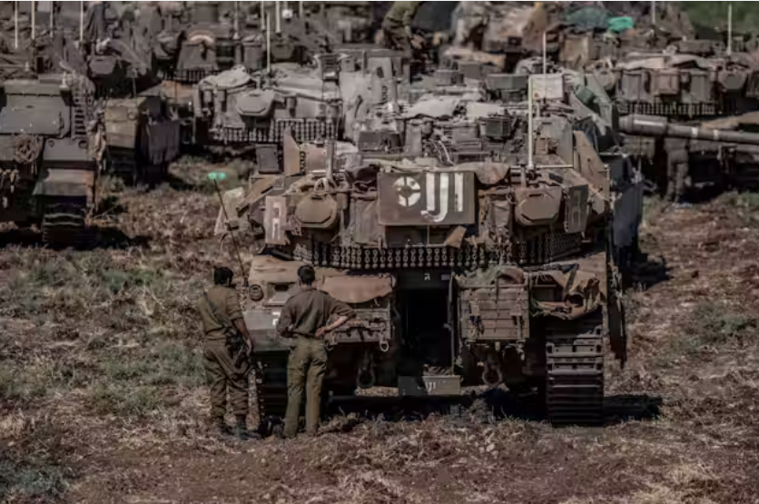 2024년 9월 28일 레바논 국경에 이스라엘 탱크가 몰려 있다. 일리아 예피모비치/dpa/Alamy Live News