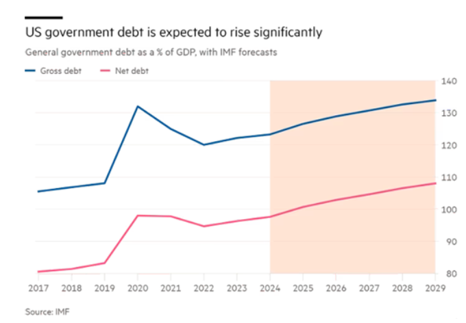 부채 상환 부담을 받는 것은 기업 부문만이 아니다. 지난 몇 달 동안 이어진 미국 대선 캠페인 동안 카멀라 해리스와 도널드 트럼프 두 후보 모두 무시한 이슈가 있다. 바로 공공 부채 수준이다. 하지만 이 부채는 중요한 문제다.