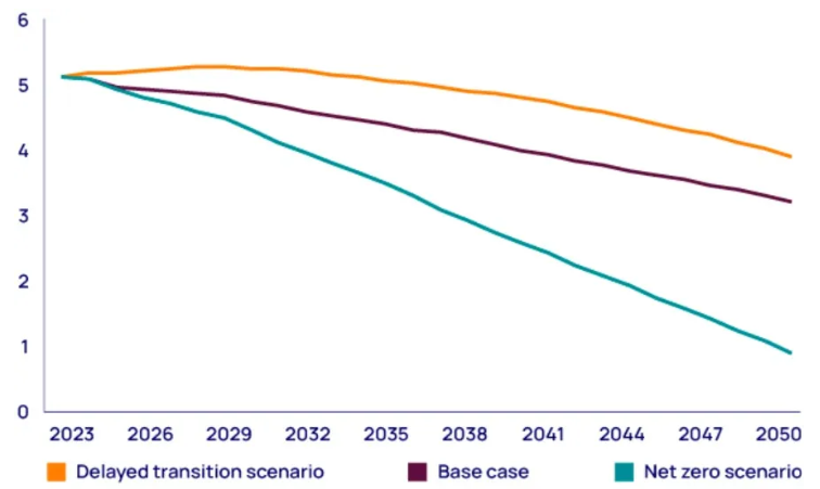 우드 맥켄지는 2050년까지 트럼프 경로에서는 6.5조 달러, IRA가 유지되는 시나리오에서는 7.5조 달러의 (주로 청정) 에너지 투자가 이루어질 것으로 추정하고 있다. 그러나 이는 넷제로를 달성하기 위해 필요한 투자액(약 12조 달러)에 비해 적은 비율이다.