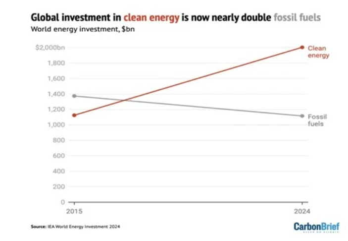 어떻게 해야 할까? 탄소 배출을 제어하고 기존의 이산화탄소를 포집하여 대기 중에서 제거하기 위한 다양한 기술이 제안되었다. 또한 화석 연료 생산을 '단계적으로' 중단하고 이를 재생에너지(풍력, 태양광, 수력 등)로 대체하려는 움직임은 지난 국제기후회의인 COP28에서 채택된 '강대국'의 공통된 요구사항이다. 그리고 현재 청정에너지 투자는 화석 연료의 거의 두 배에 달한다.