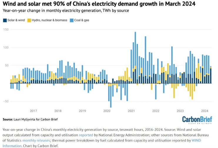 중국의 태양광 및 풍력 발전 확대 속도는 놀랍지만, 중국의 신재생에너지 발전량 비중은 독일과 같은 경제 대국이나 캘리포니아 같은 미국의 선진 주에서 달성한 수준에 비하면 아직 미미한 수준이다.