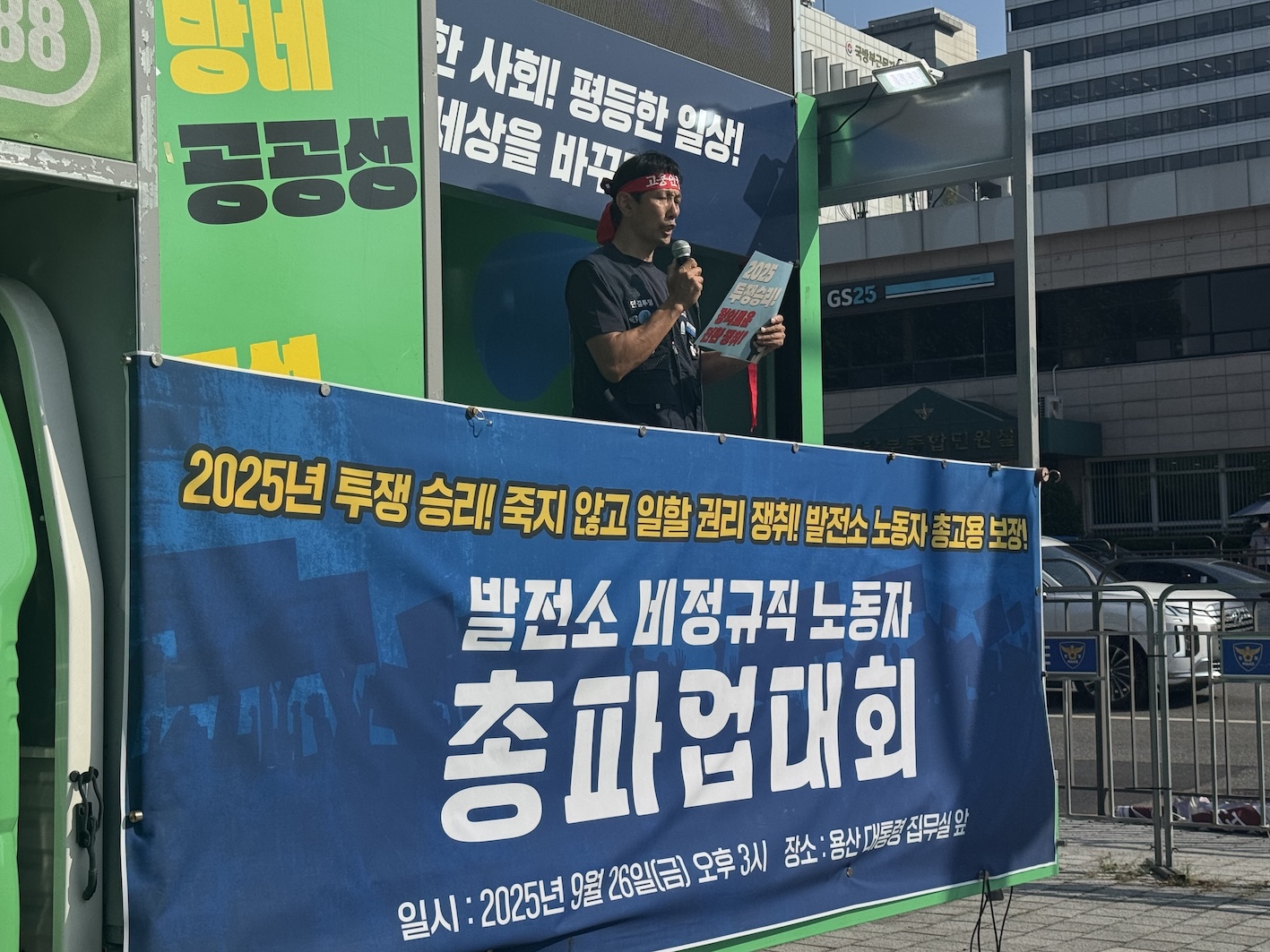 이날 총파업대회에 참여한 발전 비정규직 노동자들은 결의문을 통해 “발전소에서 온갖 무슨 일을 하며 국민에게 안정적으로 전기를 공급해” 온 노동자들이 이제 발전소 폐쇄를 앞두고 극심한 고용불안에 시달리고 있음에도 “이재명 정부도, 산업통상자원부도, 발전사도 우리의 요구에 대해 모르쇠로 일관하고 있다”고 규탄했다. 또한 “고 김충현 사망사고 이후 정부와 고용안정과 발전소 폐쇄에 따른 고용 안정 방안을 논의하고 있으나 이마저도 난항을 겪고 있다”며 “대체 발전소에서 일하는 비정규직 노동자들은 이 나라의 국민이 아니란 말인가”라며 일갈했다.