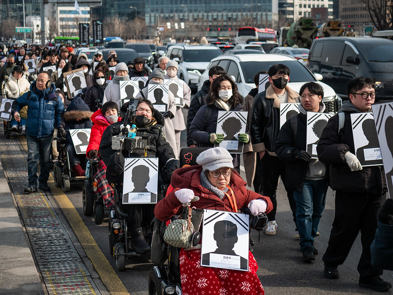26일 오후, 동자동 쪽방촌의 공공개발 약속 이행을 촉구하는 청와대 영정 행진이 열렸다.