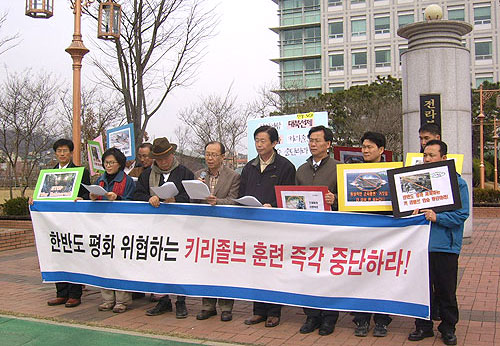 지난 3월 9일 전북도경 정문 앞에서 개최된 키 리졸브 연습 중단 촉구 기자회견은 군산평통사가 전북, 전주, 김제부안 평통사와 함께 전북지역...