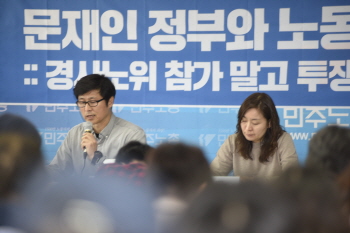 김명환 민주노총 위원장이 경제사회노동위원회 참여 의지를 피력한 가운데, 노동계 좌파 그룹들이 한데 모여 민주노총의 경사노위 참여를 저지하고 투쟁...