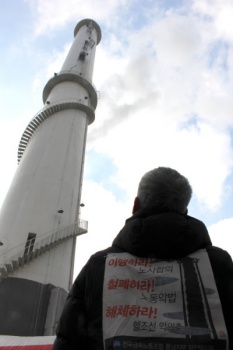 422일째 굴뚝농성을 이어가고 있는 금속노조 파인텍지회 박준호, 홍기탁 조합원이 민주노총, 금속노조, 종교계의 만류에도 단식의 뜻을 굽히지 않았...